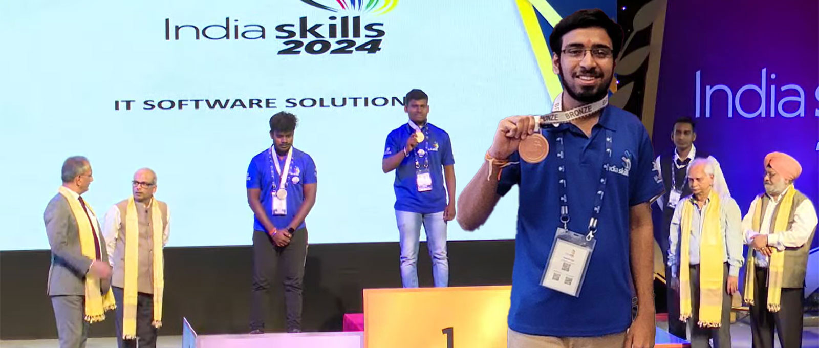 Mr Ronak Bhanushali, a computer engineering student from the institute, presented at the competition at Yashobhoomi Convention Centre in New Delhi. He secured third place out of 900 participants and won the bronze medal in the “IT Software Solutions for Business” skill category.