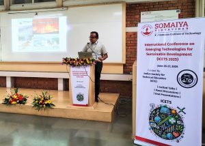 K J Somaiya Institute of Technology, Mumbai successfully organized the International Conference on Emerging Technologies for Sustainable Development (ICETS 2025) on June 26–27, 2025, with funding support of the Indian Society for Technical Education (ISTE). The conference was inaugurated by Chief Guest Dr. Dilip Shivagan, Senior Principal Scientist and Head of Temperature & Humidity Metrology at Council of Scientific & Industrial Research (CSIR) – National Physical Laboratory, New Delhi, Guest of Honour Prof. V N Rajasekharan Pillai, Vice Chancellor of Somaiya Vidyavihar University, accompanied by Dr. Suresh Ukarande, Director of K J Somaiya School of Engineering and Dean, Faculty of Engineering & Technology, Somaiya Vidyavihar University, and Dr. Vivek Sunnapwar, Principal of K J Somaiya Institute of Technology and Conference Chairperson, setting the tone for two days of thought-provoking deliberations.