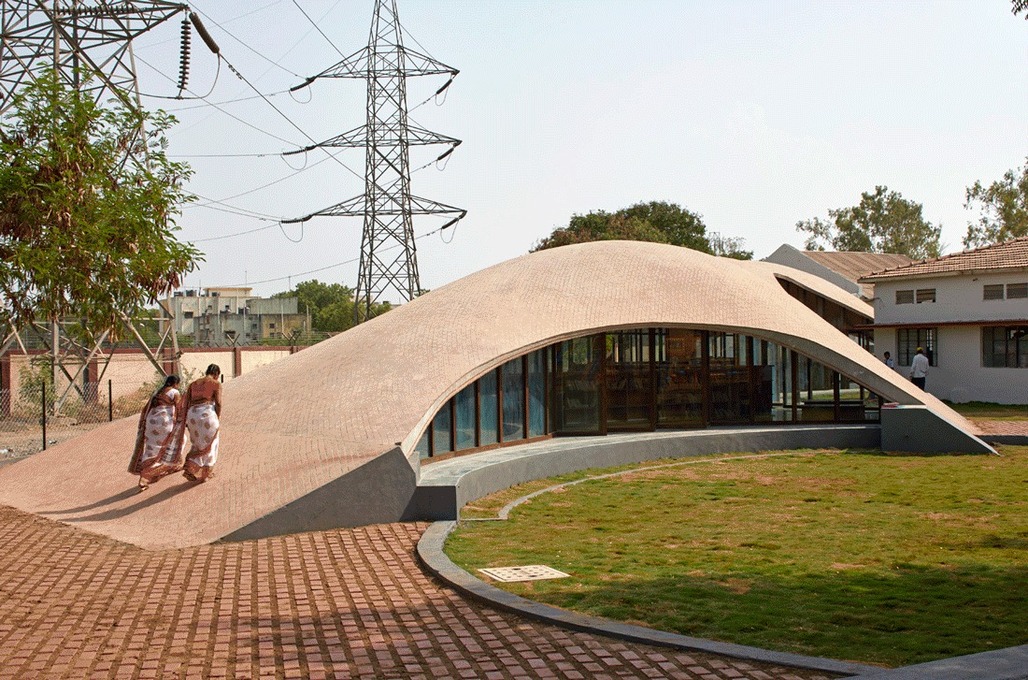 During an interview by Dezeen, the studio said, “Alluding to the intuitive impetus that children have towards the landscape, we imagined the library building to be an extension of the ground.” They were also intrigued by the geodesic structures on the school campus. When brainstorming the construction material, they wanted something tactile, considering that they planned to create a structure that was easy to walk on. Kopargoan is hot all year round, so they also needed the material to have insulation properties. Keeping in mind these parameters, they decided to go with bricks.